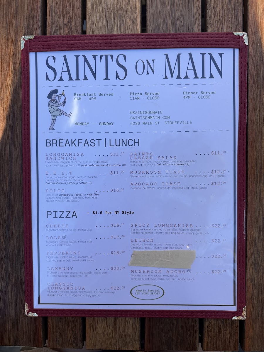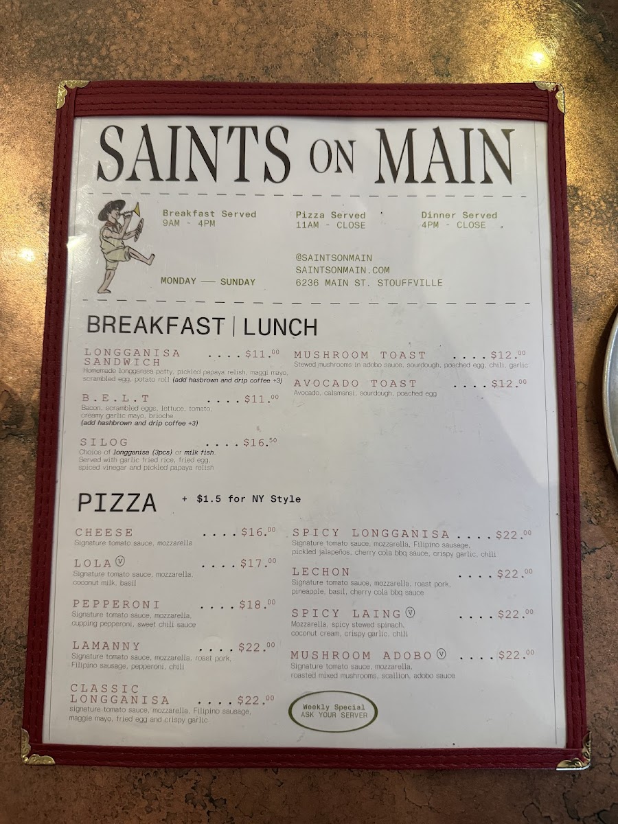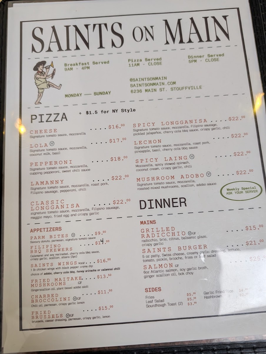 Weekly Specials offer unique, limited-time meals such as Filipino BBQ pork skewers available on Wednesdays, a midweek combo of a small pie with a canned beer, and a distinctive Badong's Spaghetti served exclusively on Saturdays.