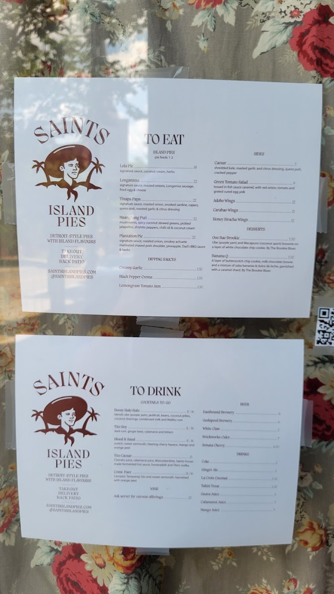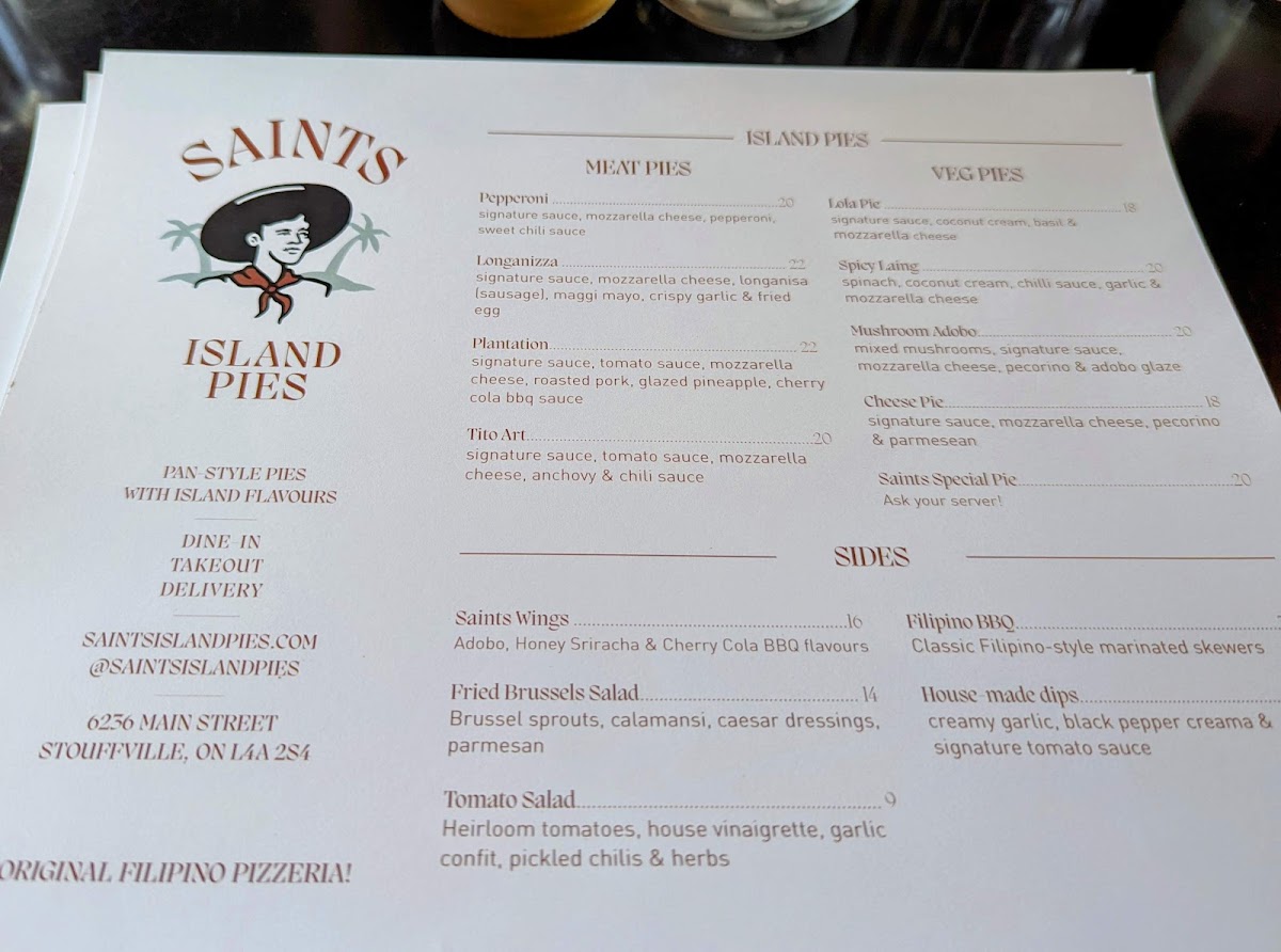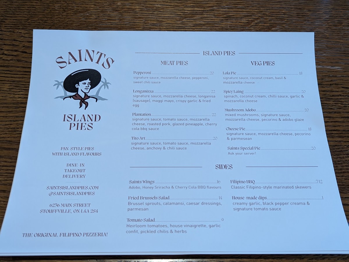 Saints Island Pies Menu