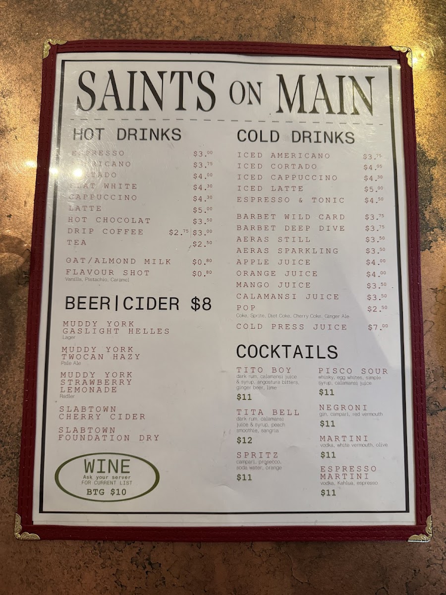 The menu at Saints Island Pies features a variety of food options inspired by Filipino flavors, complemented by bakery and café offerings. It is organized into distinct sections that cater to different dining preferences, including meal-sized dishes, light bites, and grocery items for home use.